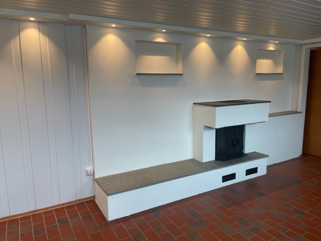 Opp­var­ming Boli­gen opp­var­mes med elek­tri­si­tet og har også en peis i stue som kan bru­kes til oppvarming.